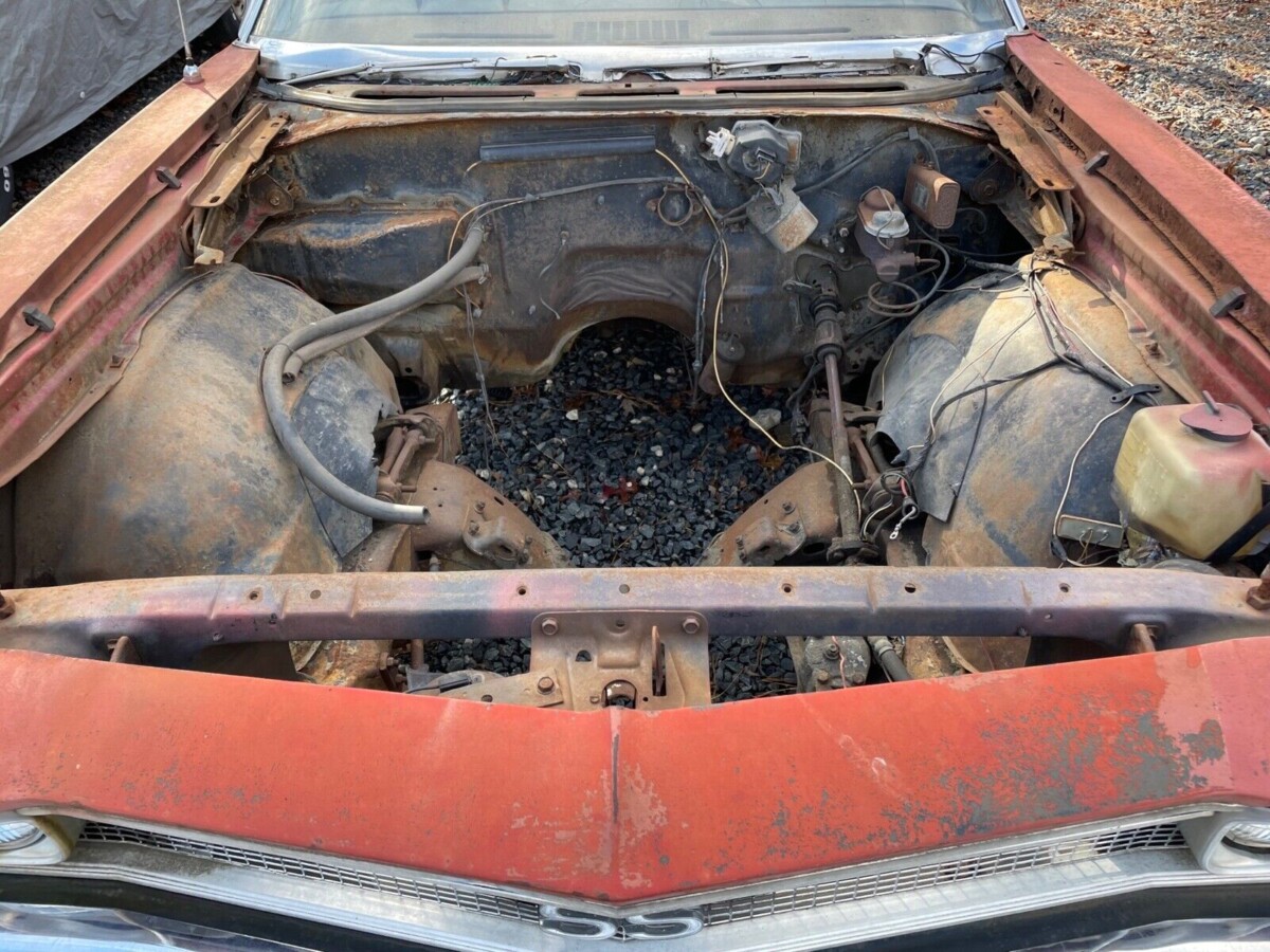 The latter point probably led to the deterioration of the interior. The front bench seat looks to have either rotted away, been chewed on by woodland creatures, or both. We’re told this Malibu once had an automatic transmission and the brake pedal supports that, but the floor shifter looks like one for either a 3 or 4-speed. If you decided against restoring the car, is there much remaining that’s viable to harvest for another Chevelle project?