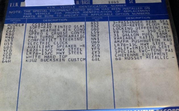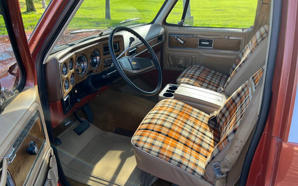 Love the color combination and condition. The pre ’81 two tone lines on Chevy pickups are my favorite. I always liked those front fender lines etter than the ’81 and after models. The lowered look looks pretty good but I think I’d go stock height if this were mine. I’m wondering if this was ordered with towing in mind? 350 4 barrel THM 400 a 31 gal gas tank and a locking differential. They definitely had some traveling in mind for sure. And those plaid sests???? Helloooooo 1977!!! Love it!! Great write up Aaron, and a great find too Tony Primo!!! Thank you.