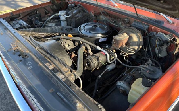 It also has the biggest engine you could get in a two-wheel-drive Blazer, the 165-horsepower 350 with a Quadrajet (the 400 was available on four-wheel-drive Blazers). This one’s been tuned up and given a carburetor rebuild, and it “runs great.” You can see that it has power brakes, and although it’s not quite visible in this picture, it has variable-ratio power steering.