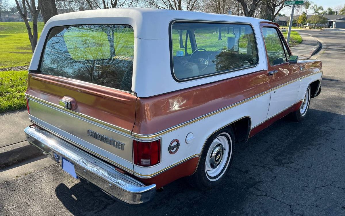 This has all been done to a very well-optioned Blazer that still has much of its original Russet Metallic and Frost White two-tone factory paint. It has cold air conditioning (converted to R134A), a tilt steering wheel, a Turbo Hydra-Matic 400, a locking differential, an AM/FM radio, and the line-topping Cheyenne interior.
