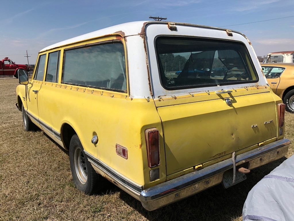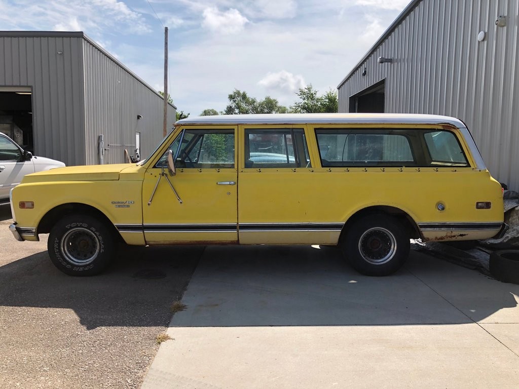 Wow, blast from the past! My Dad bought the 1970 version of this in 1971, with a little less than a thousand miles on it. The sellers had bought it for retirement travel, to pull their trailer, but sadly the husband had a severe stroke before getting to enjoy retirement much. It was two tone yellow and white, 3/4 ton and two wheel drive, and my Dad added a/c. For ten years that truck was the backbone of all our family vacations. We would pull our little ski boat up to different campgrounds in Nor Cal, fishing and enjoying the lakes. It’s the vehicle I learned how to do oil changes on, as well as brake adjustments and lube jobs. Although I think the 350 was the only option at that point, it did the job without hesitation, pulling a fully loaded boat and a family of 5 up into the mountains at various elevations and grades. Sure would be fun to save this baby and bring her back to life! I’d probably go restomod, old school looks with new tech hidden underneath. Maybe a 454?! For some reason we always called it a Carryall, not a Suburban. All the owners manuals and stuff had called it a Carryall, I think? 🤔