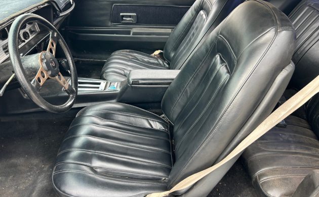 The listing makes it clear: this is a project. The car has a presentable but well used interior. The black deluxe interior looks solid and the car has power windows and rear defrost. The body is described as “solid,” which is the golden ticket for any 1970s Pontiac. If the rear frame rails and trunk floor are intact, the heavy lifting is already done. The paint is not great and the front spoilers are damaged or missing.