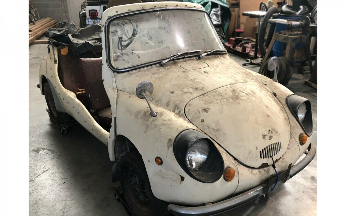 The engine is Subaru’s EK31 356 cc inline-twin, a two-stroke, air-cooled, 25-hp beast (tapping foot, waiting for “Drop a Hayabusa in it” comments). All they know about it is that it ran in 1977 when it was parked. That’s 42 years of not running compared to 7 years of running. There is some talk about the Subaru 360 Yacht having been ordered by Malcolm Bricklin in an attempt to sell the remaining Subaru 360s in the waning days of that car being sold in the U.S. and 24 of them were ordered but never paid for or picked up. Some sources say that there were only 15 of them made. However many were, this is one rare little bird. Have any of you heard of a Subaru 360 Yacht?