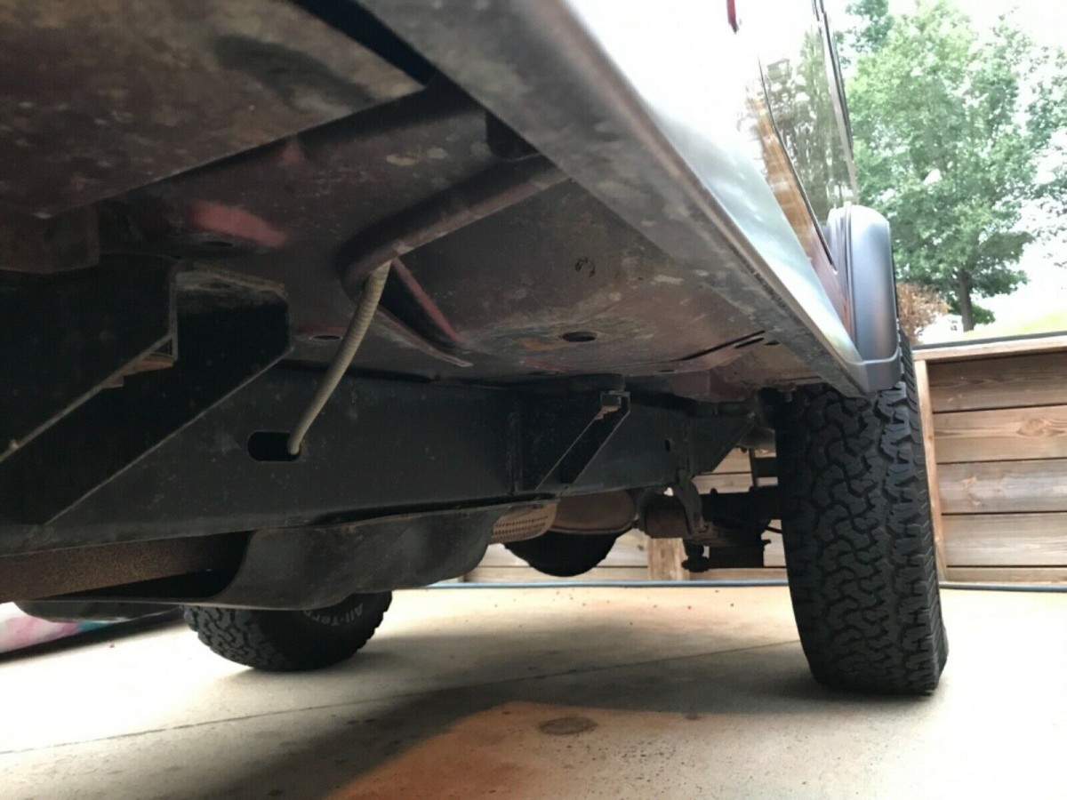 The undersides confirm that this Jeep has clearly resided in desert-like climates, with the seller stating it has been in Arizona and Texas since new. The air conditioning system has been refreshed but still has a leak somewhere as it doesn’t stay cool. Other tweaks include an aluminum valve cover and new exhaust manifold/downpipe. As they say, find a better one.