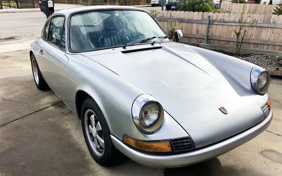 There are some clues that this 912 may have some other modifications to sort out, as I don’t believe the black lettering on the engine lid was how it left the factory. Really, it seems like all the brightwork – such as around the windows – has been blacked out. I’d also wager that the wheels and tires are not quite stock fitment, as the back Fuchs seem slightly staggered to my eyes, but I’m just a guy looking at pictures on the internet. California black plates are nice to see.