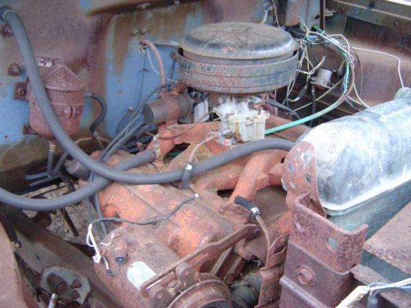 The motor seems very unique to me. It has those gorgeous free-standing intake runners and valve covers reminiscent of the Chevrolet 348/409 “W” look. It seems the best use of what we have left would be putting the motor in something with an open hood area where it can be seen.