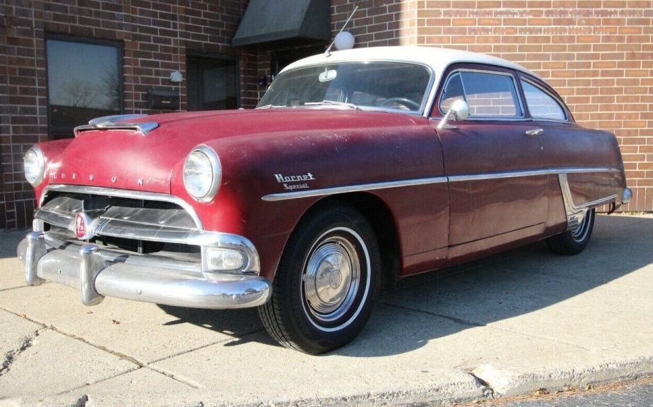 As 1954 dawned, Hudson was running out of road as an independent company. Later that year it would merge with Nash-Kelvinator and form American Motors Corporation. It was a difficult time for car manufactures, Willys and Kaiser Motors had recently performed a marriage of necessity and Packard was slowly getting painted into a corner, wondering what their next move would be. Hudson had, nevertheless, been pretty successful with their Hornet model. Introduced in 1951, this 1954 example is the first of their squared-off, or maybe more squared-off, designs. Listed as a survivor, this Hornet is located in Addison, Illinois and is available, here on eBay for a BIN price of $19,900. There is a make an offer option too.