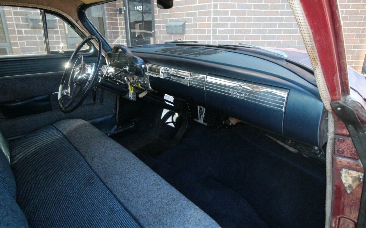Regarding my earlier reference to the interior, it looks great though the seller believes it was redone in the ’70s. And that’s good to know but again, draws away from the originality claim. The stainless dash trim and large gauge cluster are very typical for this era and are art-like in their bearing. The upholstery chosen for the door panels and seats may or may not be of the original pattern and material but they’re appropriate for this car. The carpet appears to have been replaced too. And yes, there is an original radio installed.