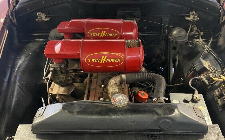 Under the hood is Hudson’s famous 308 CI, Twin-H-Power, inline, six-cylinder engine, and this Hornet has the twin carburetor, 170 HP version – very nice! The engine is connected to a GM sourced Hydramatic automatic transmission and, according to the seller, this Hudson, “runs and drives great“. Hudson had quite a bit of success on the race track with this Twin-H engine and the Hornet aero design. Between 1952 and 1954, Hudson scored 66 NASCAR victories. BTW, it looks like those distinctive air cleaners have been refinished and the seller admits as much.