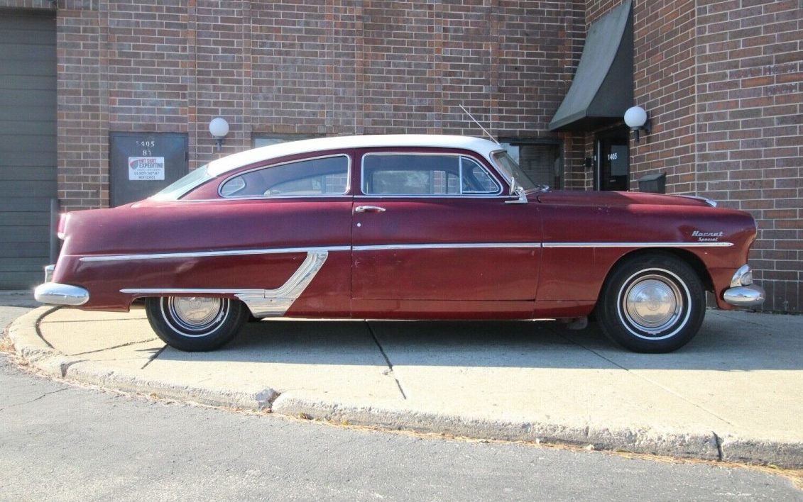 This model is one of the rarest of the stepdown Hudsons. The Hornet Special was only offered in 1954 and the 2 door brougham(two door sedan) was only available in Hornet form for that year in this model configuration. The reality was that they were clearing the shelves in anticipation of a merger with Nash. . The body is a basic Wasp body with a LWB front end. Weirder things happened on these models as well. Some cars had gravel shields that were chromed on one side and stainless on the other.Some had friction lock vent windows and some others had crank vent windows. A rare bird..Very desirable car. If you ever want a stepdown ,this is one of the rarest Hornets made. They run like scalded dogs. Ask me how I know. LOL