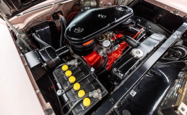 This Bel Air is powered by its original EB-code 283 cubic-inch V8, rated at 270 horsepower from the factory thanks to dual four-barrel carburetors. The seller notes that it retains the correct batwing air cleaner, factory high-lift camshaft, and dual exhaust, all key components that define Chevrolet’s top-tier small-block performance for 1957. Power is sent through a column-shifted three-speed manual transmission, preserving the period-correct driving experience that many enthusiasts value in these cars.