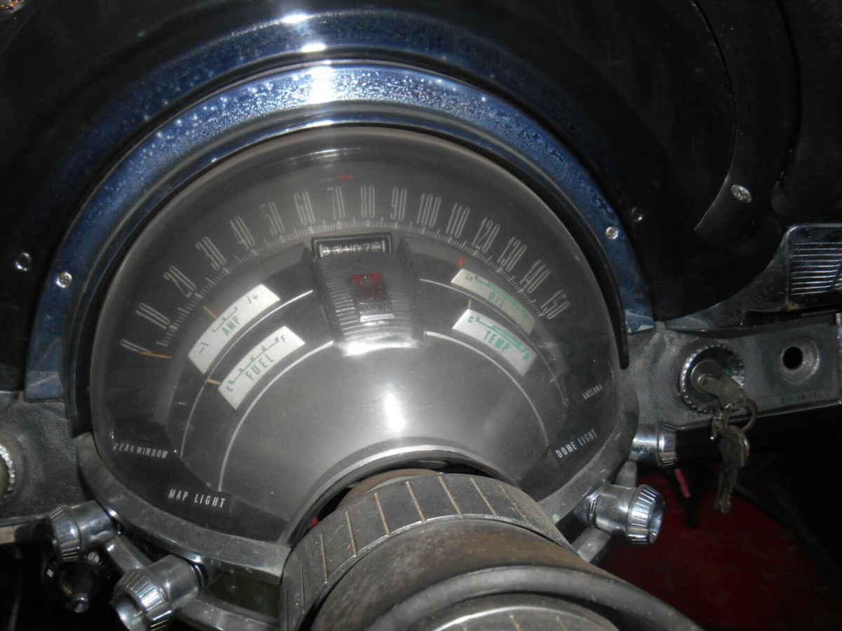 This was a red 300 with a black leather interior. The seller found the car in Alaska where it had been in a barn since 1982. The paint is largely original and not in bad shape after nearly 60 years. We’re told there is some minor rust in the front floor pans as well as the trunk pan, while the frame rails and rocker and quarter panels are good. Parts of the interior look good except for the dislodged driver’s bucket seat. The factory 150 mph speedometer has held up and looks way cool.
