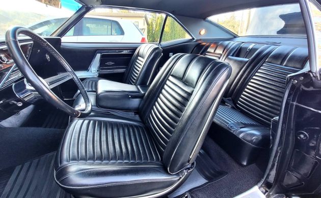 The seller says that this GS is in excellent condition, with a newer paint job but an original interior. Considering that the odometer reading is 87,520, the interior is absolutely immaculate. One thing that might scare a few buyers away is that this Riviera doesn’t appear to have air conditioning (there’s no compressor in its usual location in the engine compartment), which seems to be a deal breaker with many potential Riviera buyers. Aside from that, the buyer says that “everything works, including [the] original rear defrost, clock, all gauges, electric windows, cigarette lighter, [and] AM/FM radio with electronic equalizer. Notice that bucket seats were no longer a given on Rivieras; the march toward the bench had begun.