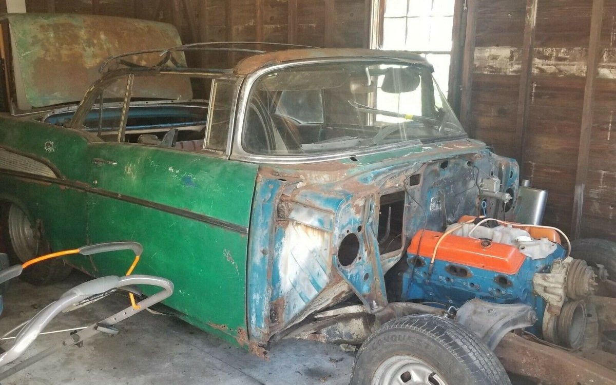 The seller says that all the “convertible-only” parts are present and the only missing parts are general ’57 Chevy pieces. There’s no mention of the fenders and hood, but one photo shows them in a pile. Hopefully, everything is there, but even if it is, sorting, cataloging, and organizing looks like it will be half the battle. The sale also comes with two engines. The engine in the car is a 350 mated to a manual transmission. The seller also has a 283 from 1957 that features a pair of camel hump heads and dual-quad setup. If you don’t want the dual-quad setup, the seller will knock $2,000 off the price.