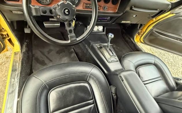 Pontiac produced 14,519 Formulas in 1974 and that was more than Trans Am production of 10,255 units. Overall, Pontiac produced 73,729 total Firebirds for the 1974 production year. This car looks like it is riding on later model 15×8 Pontiac aluminum snowflake wheels that have been painted flat black. The car looks solid enough but pictures of the undercarriage and, again, the engine compartment would be helpful.