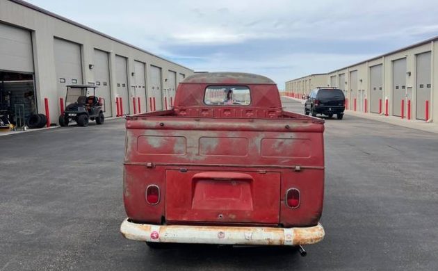 I am not one to “cheer” for some of the insane prices old VW campers and Buses command, but I do like the variety of desirable features this old pickup has. The patina is pretty great, as you would never have to paint this pickup. The color is likely original based on the color of the dash, but there’s some primer peeking through the finish. It’s a working rig, so the roughneck finish works. The painted bumpers work as well, as chrome assemblies would be too fancy for a rig like this. The VW also sports pop-out safari windows, one of the cooler features from this era of Type 2s.