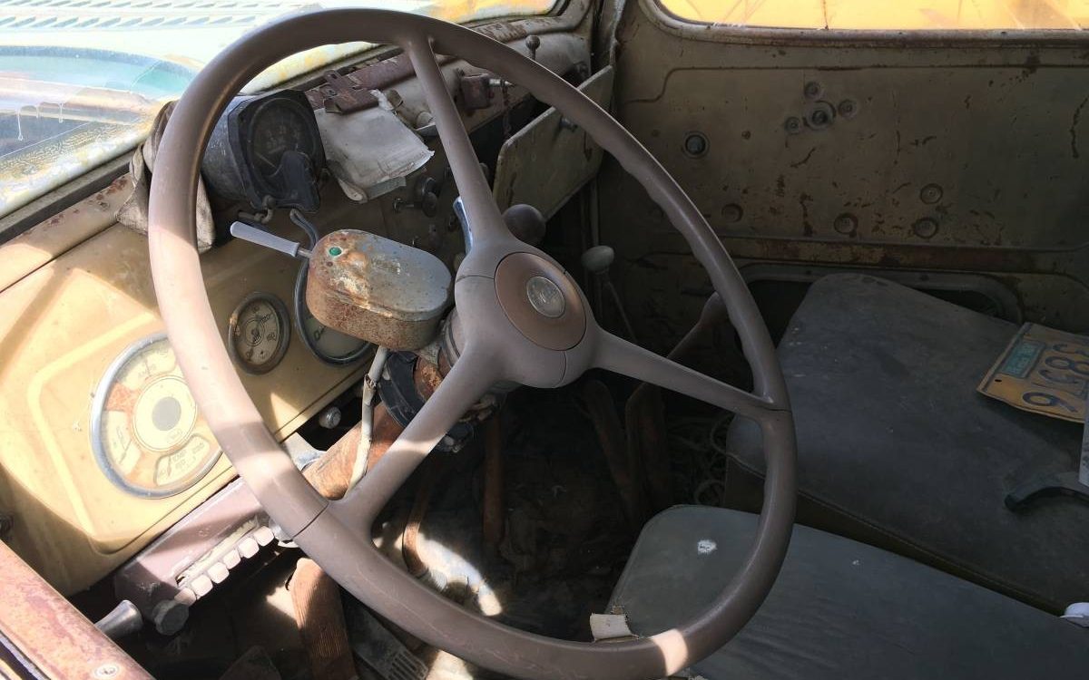 The interior looks very original and the seller even says it has the original radio! The seller also claims “no rust” although “both doors have issues.” The floorboards are made from wood, so they can be easily replaced. Work trucks of this era lacked a lot of creature comforts, which makes them easy candidates for restoration. They are simple to take apart and put back together.