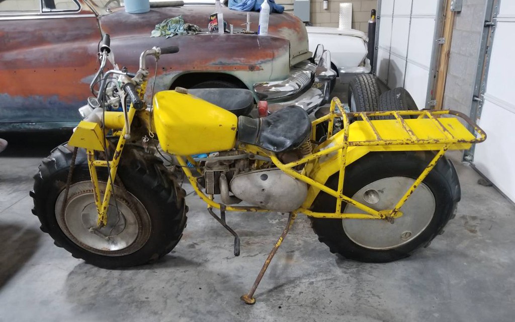 Got to agree with Mark, there are much better ways to get back in the woods. I think those hollow rims were for extra gasoline storage. I always wondered how you get it out of there, not that I want to ride on 2 gas bombs for tires anyway. These are heavy, slow, quirky front drive, you’ll be picking this thing up off the ground more than once. I remember an episode of Pawn Stars, Rick buys one of these, because, like Scotty, he always wanted one, had this Rick Dale restore it, had a ton of money in it, and was totally disappointed riding it when done. I’d almost take a Honda 3 wheeler over this, and that’s saying something.