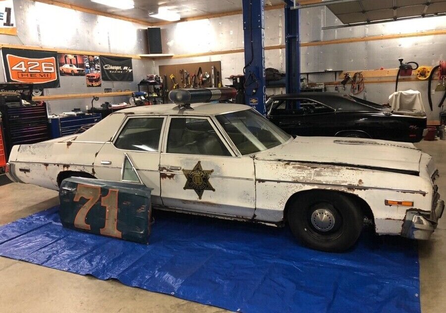 As the story goes, this 1975 Dodge Monaco is one of two that were sent to Conyers, Georgia for filming the first five episodes of “The Dukes”, a good ole boys movie that took advantage of the popularity of chase flicks like Smokey and The Bandit. Only the early segments were shot on location after which production shifted to Southern California and Hollywood). The seller says this car and some other artifacts from the show were left behind, but not before this vehicle was featured in a couple of notable chase scenes and jumps.