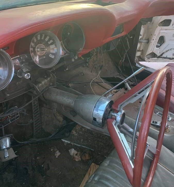 We’re told that some form of restoration has been started on this 80,000-mile two-of-a-kind vehicle. Pop open the hood and you’ll find an M-code 390 cubic inch V8 with automatic transmission. The engine has a triple-carburetor set-up which would have produced 340 hp when new. The photos do most of the talking and – as such – it appears the car may not be complete. But considering much of the Ford should be interchangeable with a standard ’63 T-Bird, maybe filling in the blanks won’t be too hard. Considering that the restored original sold for 2/3 of a million dollars 15 years ago, what could this one be worth in its current state?