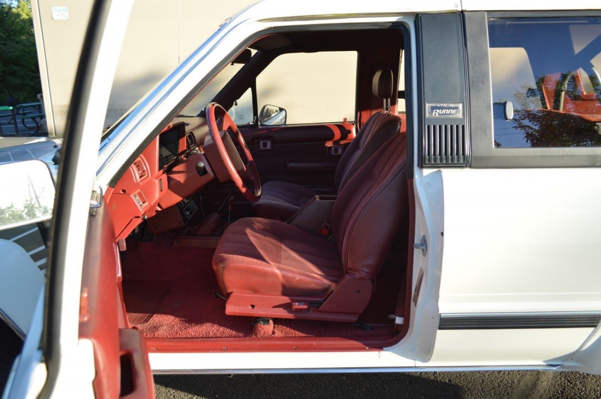 I’ve always liked the look of these Toyotas, and this one looks to be in good order. There are no signs of any real dings or scrapes, and the factory SR5 wheels look good on this vehicle. The paint and decals look to be in good order, with no signs of cracking or fading. The only real fault that I can find is the fact that the lock is missing off the gas door. The owner does state that the vehicle is free of rust and accident damage.