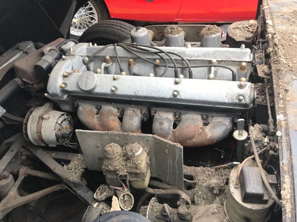 Not much is listed about the engine except that it is numbers matching with an automatic transmission. It also states that triple SU carburetors are installed and the cylinder head looks period correct. It is hard to tell what is or is not true in this listing. There is apparently a clean title to the car.