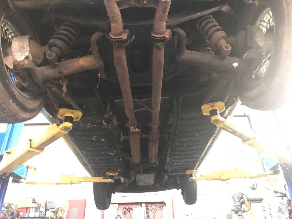 I can see the driver side footwell is rotted, which is a common problem spot, as also evidenced by the placement of the front left lift arm. Mine was rotted too, and my car was overall fairly rust free.