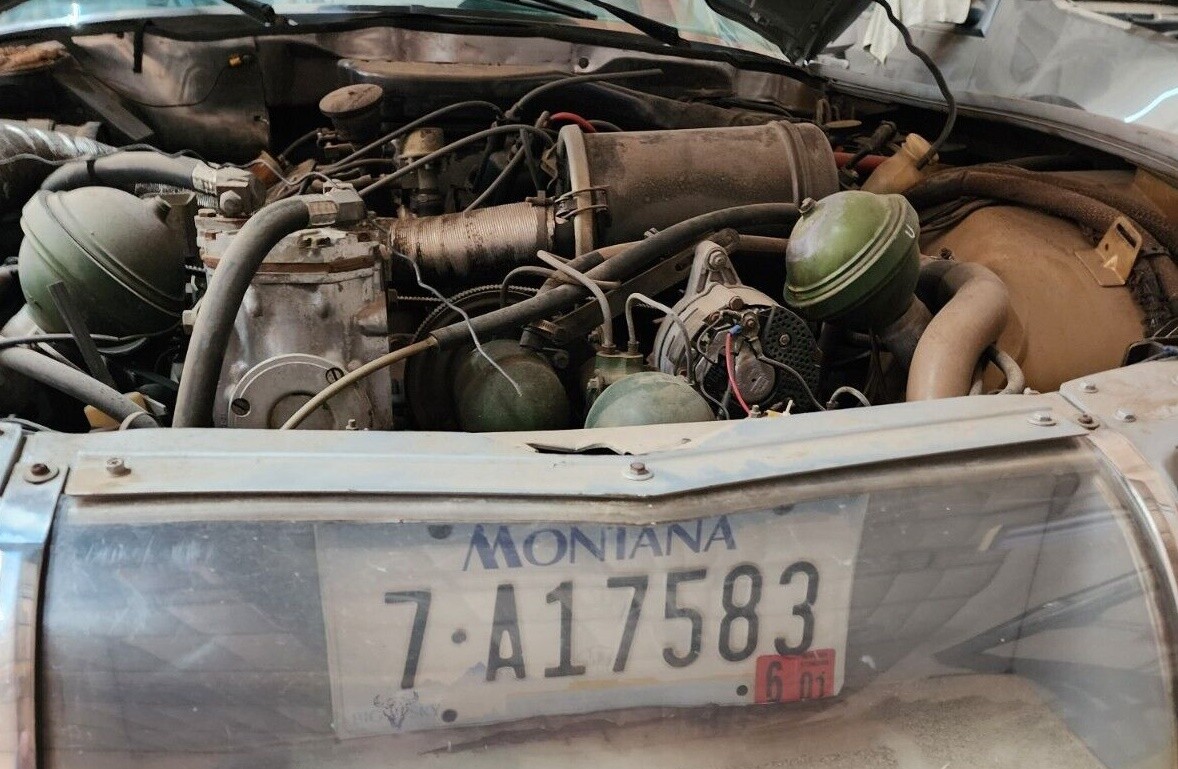 The car was originally gold with a brown interior, but it was repainted silver in the late 1990s. “There is absolutely no bondo on this car, and the damage you see on rear quarter was done pulling it out of corner,” the vendor says. “No rust! It lived its life in California, and was only registered in Montana when my parents were retired and traveling full time.”