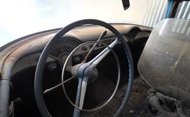 This Chevy was a basic car when new, and it appears a 235 cubic inch inline-6 is under the hood. But it’s been stripped of parts as perhaps it seized up and repairs began when the whole project was mothballed. A 2-speed Powerglide transmission is likely lurking there, too, though the seller says he has an extra along with a 283 V8 with a dual quad intake, which appears to be part of the transaction.