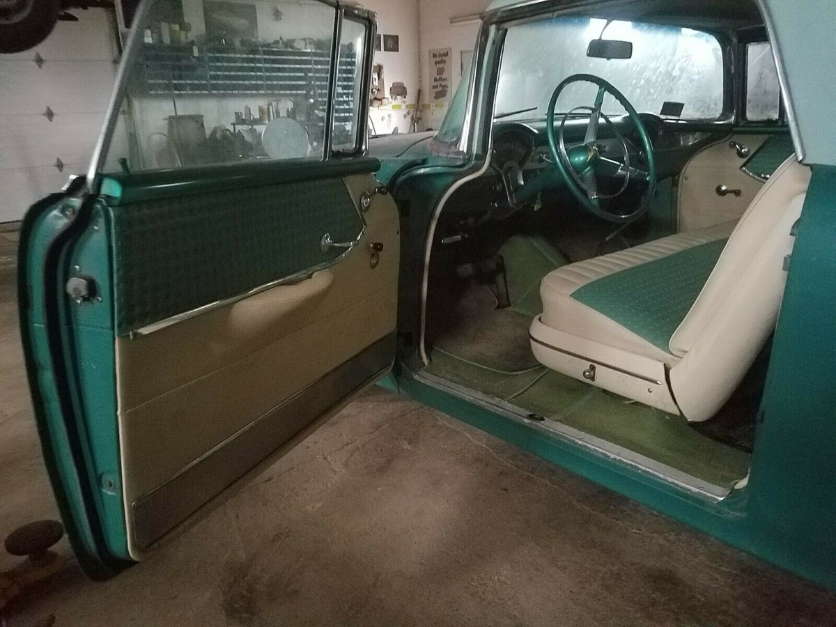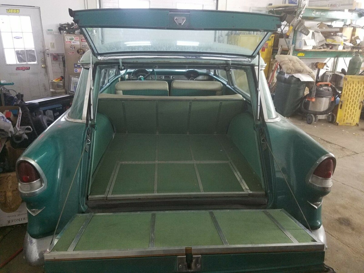 The Nomad apparently spent an extended period of time in dry storage, but this doesn’t look like it has done it any real harm. While all of the steel in the wagon is said to be original, the same can’t be said for the paint. The combination of Seamist Green and Neptune Green is how the car rolled off the production line, but it was the subject of a repaint in lacquer many years ago. The owner feels that this could date back as far as the late 1960s or early 1970s. The panels look to be very straight, but with the layer of dust, it is a bit hard to tell whether the paint will hold a good shine if the Nomad is washed. The seller also refers to the Nomad as being “99.9% rust & rot free,” but doesn’t indicate where there might be rust. I don’t see any visible in the panels, so perhaps there is some corrosion or minor rust under the vehicle. I tend to agree with the owner’s assessment that the exterior trim and chrome would respond well to polish, and while there is a crack in the rear sliding window on the passenger side, the rest of the glass is in good condition.