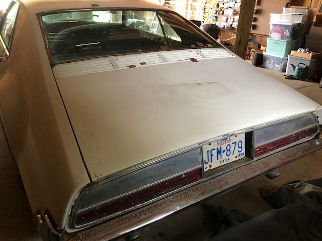 The owner refers to the Porcelain White Toronado’s sheet-metal as being original and solid, but that might not necessarily mean that the vehicle is completely rust-free. I can see what appears as though it could be some rust developing on the lower edge of the trunk lid on the passenger side. You can see it visible in the above photo fairly clearly. The front bumper is also damaged on the same side, and where the chrome has been peeled away, there is definitely corrosion visible. I think that a personal inspection might well be on the cards to confirm that there is nothing nasty hiding below the surface. Having said that, the lower extremities like the rockers, rear quarter panels, the bottom corners of the doors, and the lower front fenders, all look pretty clean. The external trim and chrome all appear to be present, although there are some items like the front bumper that will need a trip to the plater to be returned to their best. The glass is all present, and it does appear to be in good condition. I’ve always found the exterior styling of these early Toronados to be interesting because it seemed like a slightly odd decision by Oldsmobile to produce a luxury automobile as a 2-door fastback. Having said that, I don’t think that it is an unattractive car, and when viewed in side profile, the Toronado shares a lot of visual queues with the 2nd Generation Firebird…albeit on a larger scale.