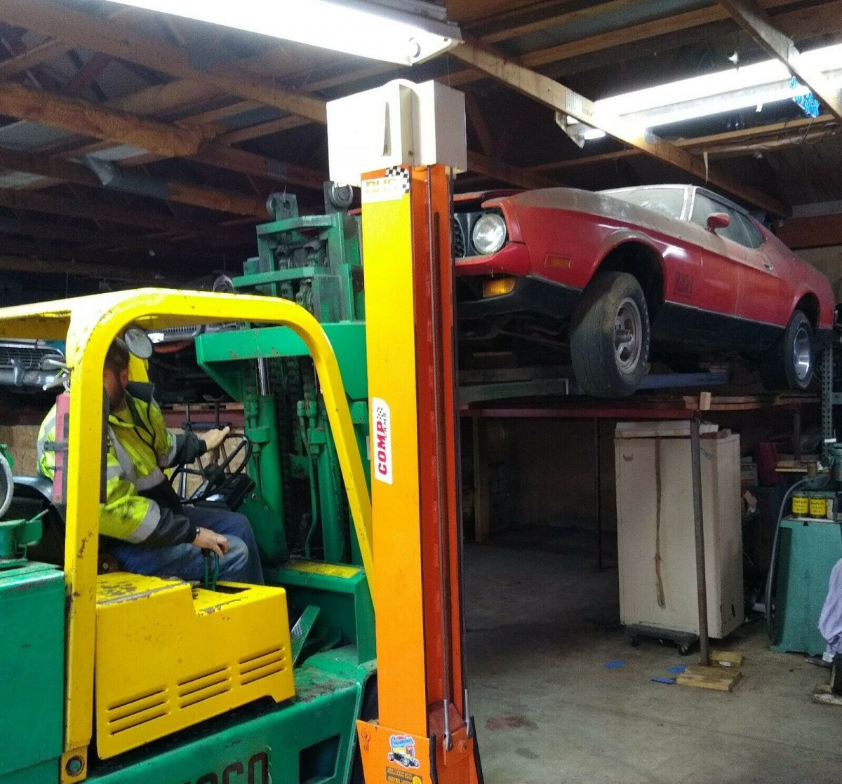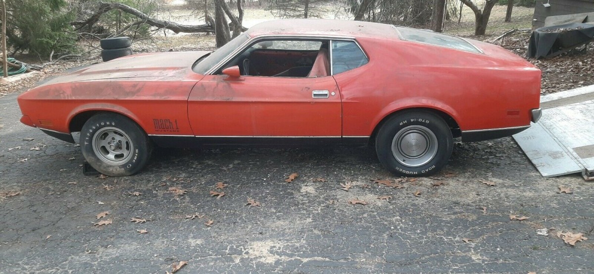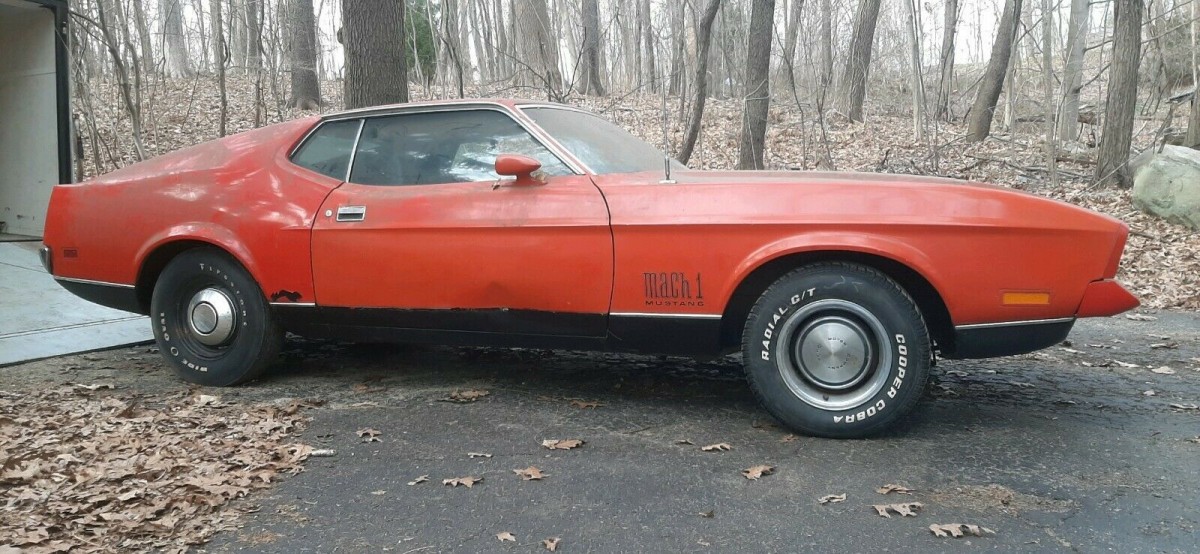 Wow! Digging’ it! It appears to be missing its hockey-stick stripes, maybe after what seems to have been a partial respray? In this configuration, it sure reminds one of the ‘72 Mach 1 from Diamonds are Forever (007). It looks like a great project car and will be interesting to see how high the bids go.