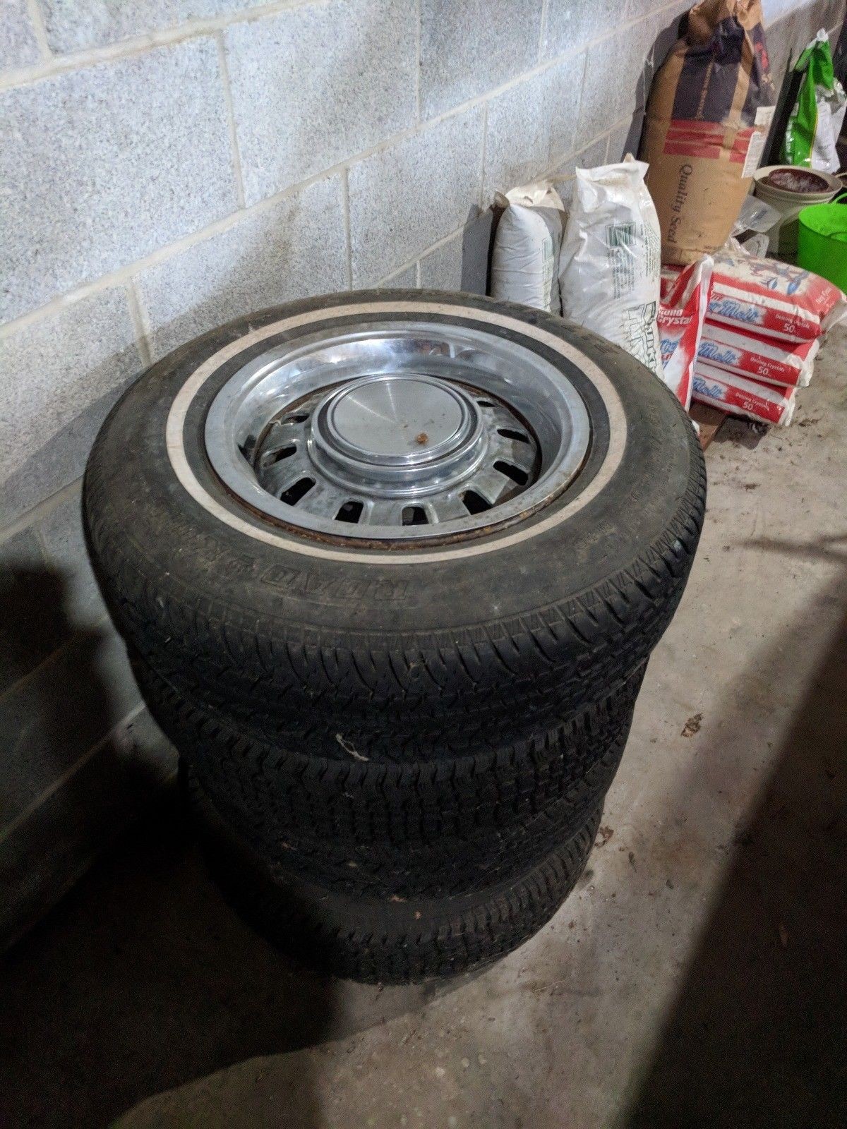 Here are the original wheels and center caps. I hope the other three look as good as the one on top, although the trim ring has seen better days.