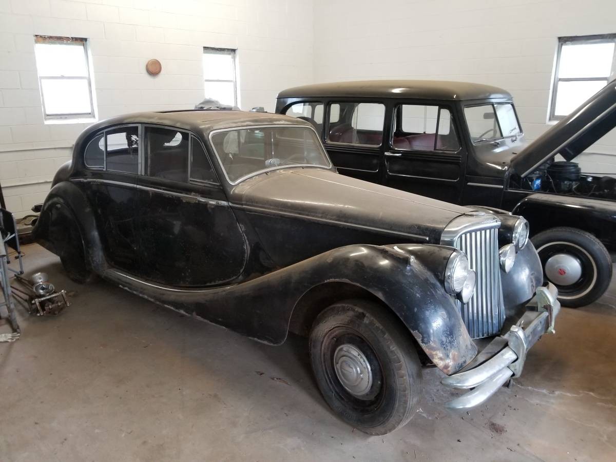 The latest chapter in the “darnit, another old British car Jamie would love to own but can’t buy right now” book has been written by this 1950 Jaguar Mark V., located less than 100 miles away from me in a shop in Winston-Salem, North Carolina. It’s listed for sale here on craigslist and is priced at $6,500. Even with the surface rust and dust you can see the beautiful William Lyons-penned lines of this car.