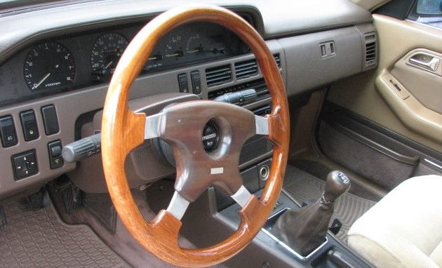 The 5-speed manual transmission was shared with the RX-7 of the same era, though the seller notes some differences in gearing. While this car originally came with leather, the seller claims those seats were tired cosmetically and a cloth interior has been swapped in. If it were mine, I’d absolutely restored the leather buckets and keep this 929 the executive saloon it was meant to be. The number of examples ordered with the six-cylinder and 5-speed has to be in the tens, maybe the 100s. The interior looks quite tidy and the aftermarket Momo steering wheel is tolerable, especially considering how ugly factory steering wheels were in these cars.