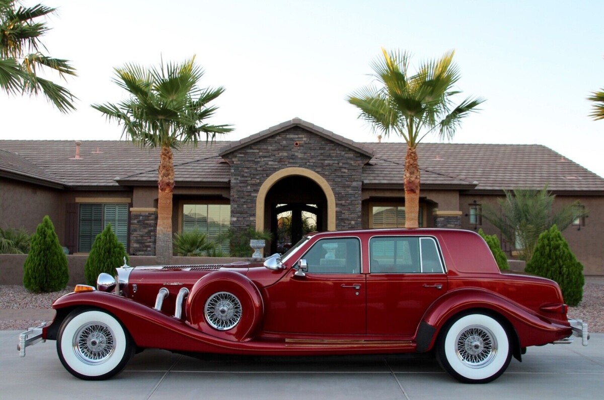 Styled after late 20’s/30’s era classic Mercede’s-Benz roadsters by genius automotive and industrial designer Brook Stevens, the first generation in the early 60’s were produced for Studebaker. But within a few years, Stevens formed his own company based in Milwaukee, Wisconsin, to manufacture and market these excusive head-turning automobiles. For 1988, Excalibur positioned the Four Door Touring Sedan as where “self-indulgence could have a practical side.” This metallic red beauty supports this with its larger coach size, four doors, and what Excalibur claimed was “the added convenience of abundant trunk space.” Based on the supplied photos, I can’t spot any issues with the paint, chrome, trim, glass, or anything. It looks practically showroom new. And how cool are the vintage styling cues and those dual spare tires, side supercharger pipes, Dayton wire wheels, and 4 vintage horn trumpets?