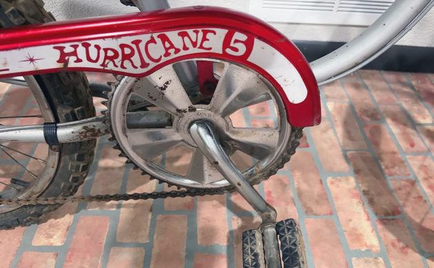 Some refer to this 40-pound Hurricane 5 as an early BMX bike, or at least a BMX-type or style, due to its rugged features, rear shocks, etc. It’s a bit heavy, but that just means it’s rugged, no? The seller says, “Schwinn hurricane all original.” That’s it. I wish they had included a photo of the serial number so we could nail down the year of this unusual bike. Have any of you heard of the Schwinn Hurricane 5? Do you have any winter restoration projects planned? If so, let’s hear about ’em!