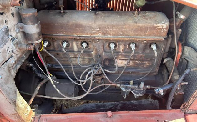 While the Independence saw a few cosmetic upgrades over its predecessor, its six-cylinder 194 cu. in. Stovebolt was similarly improved: the block was reinforced, the crankshaft was counterbalanced, and output rose to about 50 hp. The clutch diameter increased, and a worm-and-sector steering mechanism replaced the worm-and-gear. The frame itself was reinforced for light commercial use. Chevy offered the Independence on two longer wheelbases, with gross vehicle load ratings up to 8000 lbs. No change of engine, but the heavy-duty trucks were supplied with a four-speed manual, while the light trucks and Chevy’s cars received a three-speed. This truck runs, though nothing is said about whether it drives. The original updraft Carter carburetor has been replaced by a downdraft of some sort, and the muffler looks new.