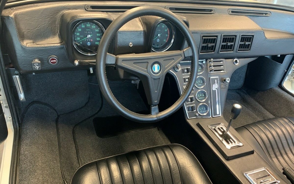 This Pantera is described by the seller as “factory correct — showroom condition,” a claim that seems correct based on the photos. A deluxe Marti Report is included. The seller indicates that it was picked up as an unfinished project and given a thorough restoration with only around 100 miles logged since. These first 75 imports are easily identified by their pushbutton-style door handles. Other features unique to these early cars include single slot Campagnolo wheels, non-tinted glass, an aluminum gas tank, and unique sheet metal in the engine bay. This example looks great in its cream-colored paint and skinny chrome bumpers. Overall, it has an elegant simplicity that was lost on the later cars with their spoilers, wings, and fender flares.
