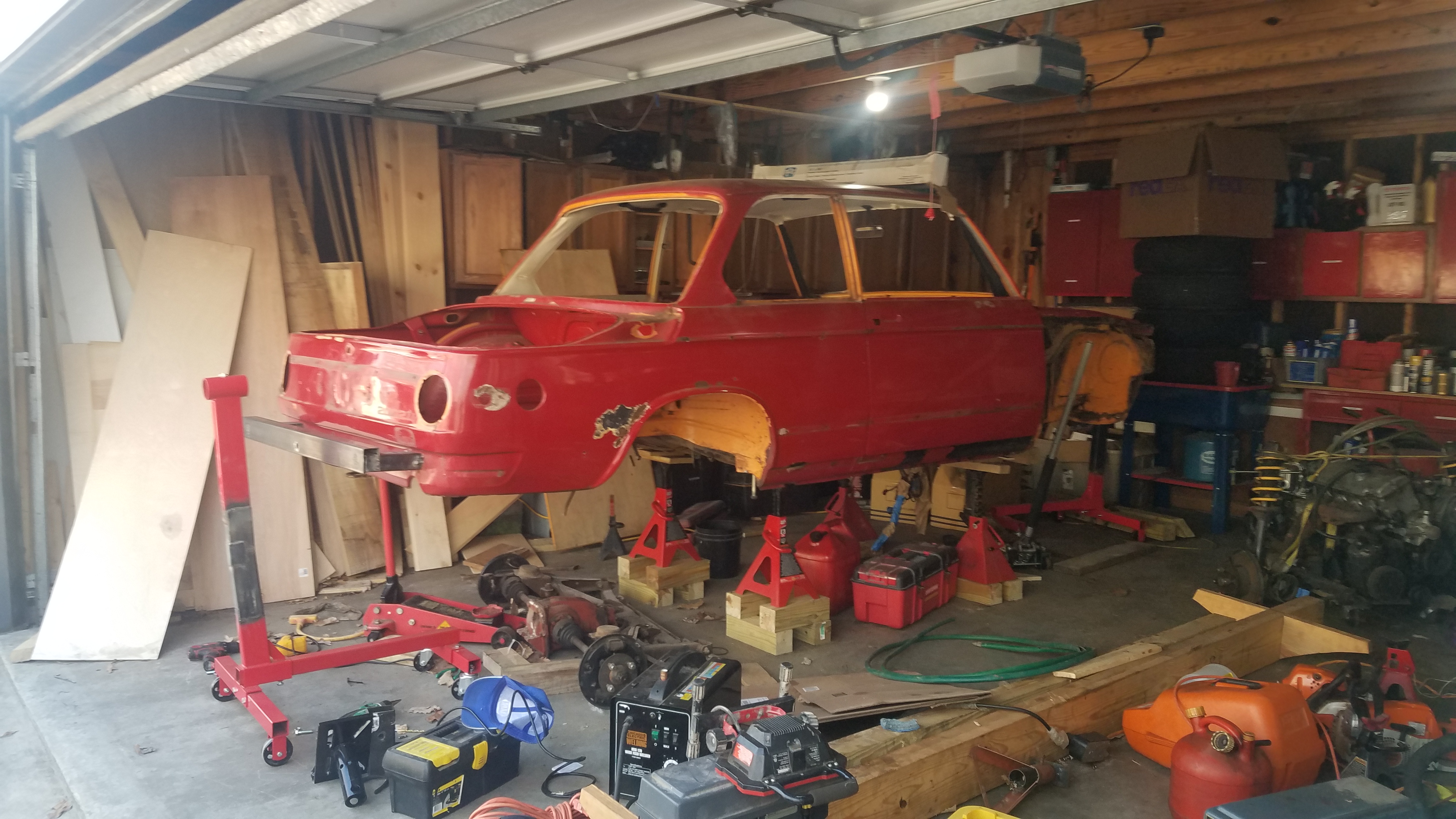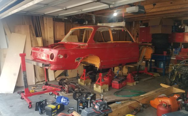 This is my ’72 tii. More or less current state… fabrication of my poor man’s rotisserie (two modified $35 engine stands).