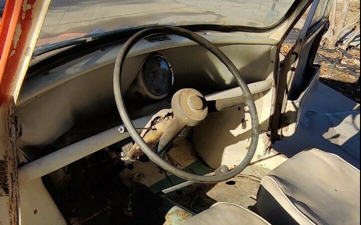 These early Minis had a minimalist interior with a single centrally mounted speedometer and integrated fuel gauge, pull cords to open the doors, and sliding front windows. The missing floor covering exposes the floors which again have an abundance of rust pitting but no obvious rot. All upholstery is present though it is stained. As with all other early Minis, it has the long “magic wand” shifter that remained in place until a fully-synchronized transmission was introduced across the range. The seller notes that as an early 1960 car, it has certain features which did not last long but does not specify what they are. Perhaps a Mini expert could weigh in in the comments?