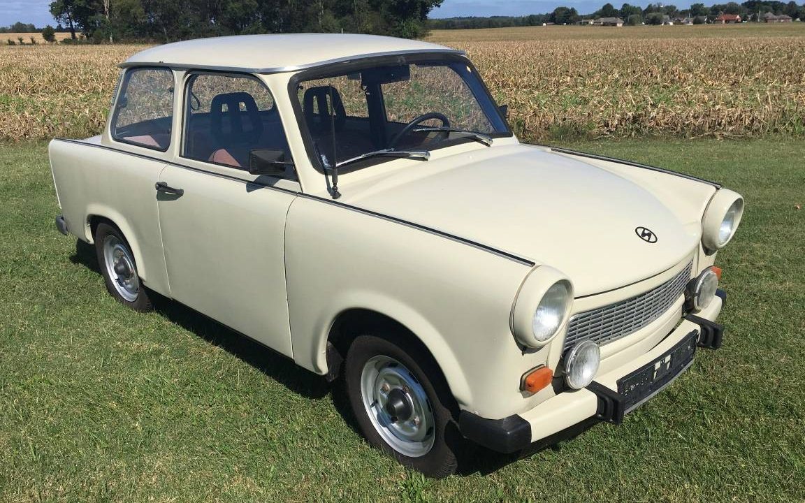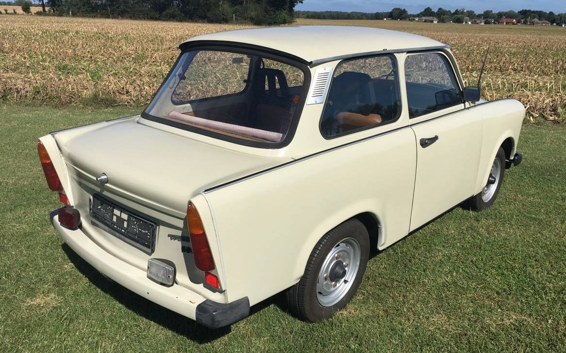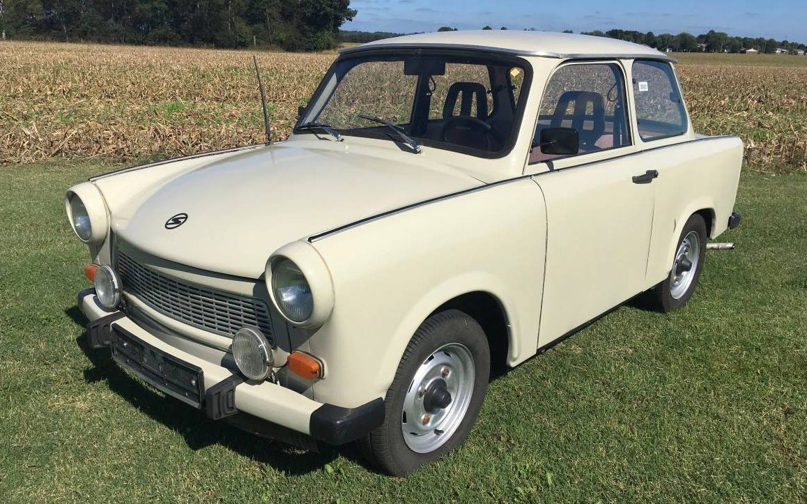 Trabies are an unusual car in that the body is made wood pulp Mache and tends to crack and decay quite easily. It was the peoples car of the DDR. These cars are so unsafe that the US Army would not allow US Forces to purchase and register them in West Germany. I have driven a Trabie that belong to my relative from the East. Its like driving a truck that has the control pedals in the center of the floor board and the shifter on the dash panel. Its like driving side saddle, not right side or left side but middle side. And of course its a 2 stroke that requires you to manually mix the oil and benzene. Awkward to drive but fun once you acclimate to the drive.