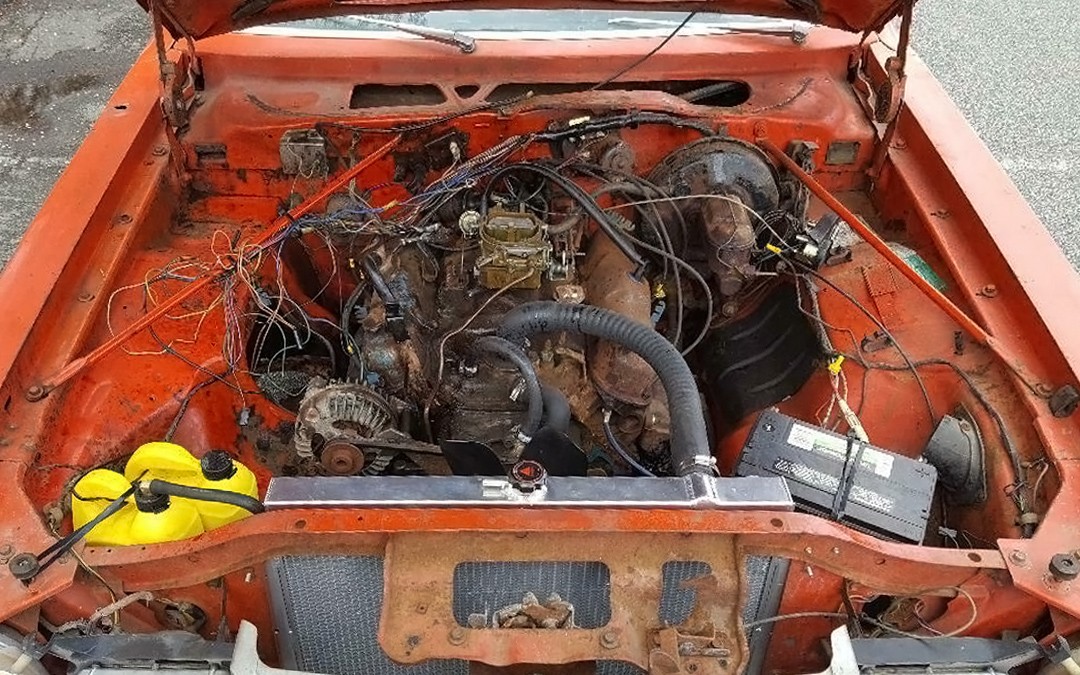 This is the optional 360 cubic-inch V8 which would have had 160 hp in 1977. Those Prestone jugs are actually filled with gas as the restored gas tank hasn’t been installed yet. Talk about range-anxiety! The next owner will have a fair amount of work left to do with a lot of it being on the body and, as you can see, under the hood. Have any of you owned a Volare Road Runner?