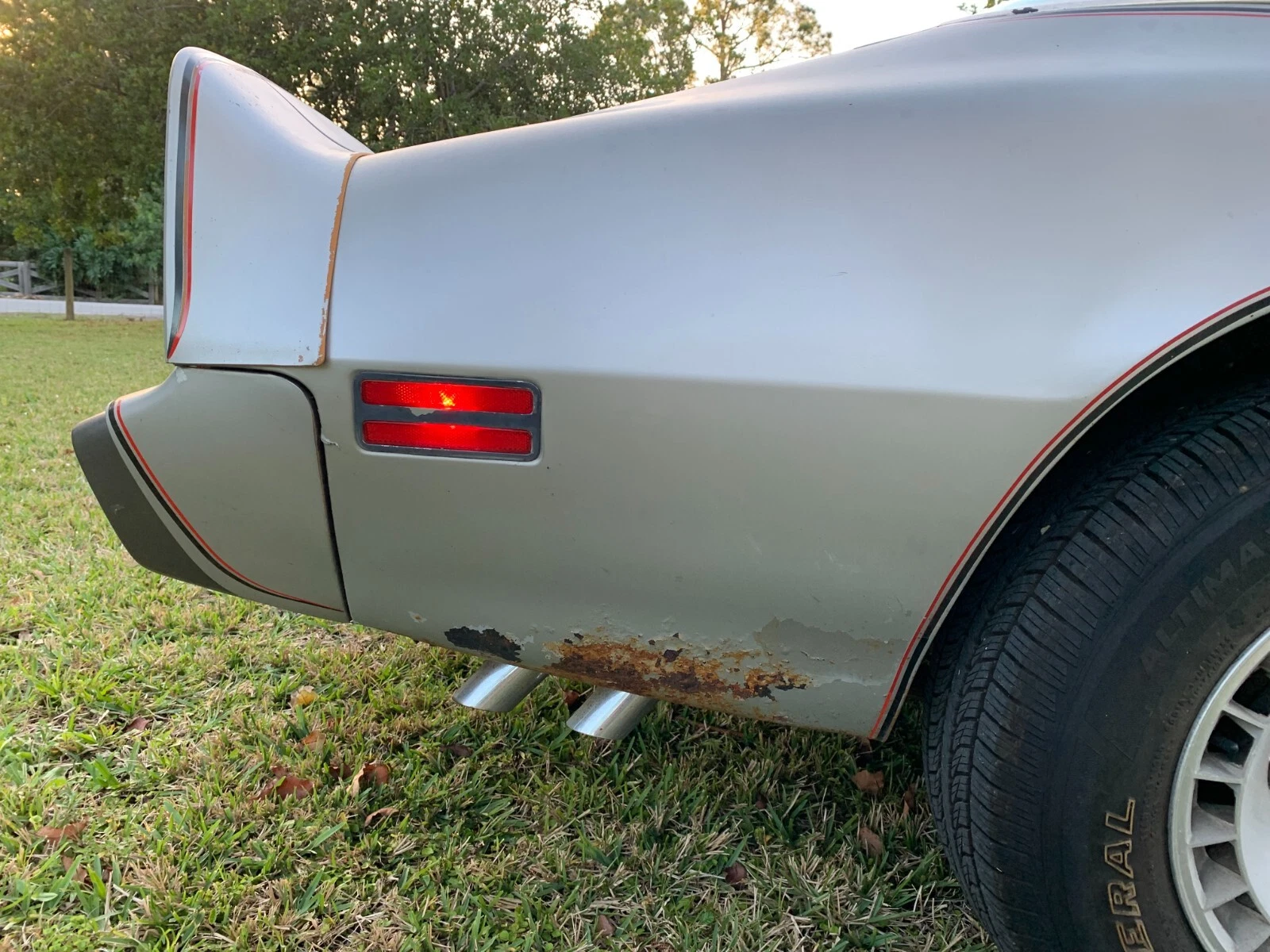 Car has been hit in the front and they didn’t properly prep the fenders. The black you can see where the paint is coming off is the e-coat primer on a pair of new fenders done long ago. Also, if you look at the side views you can tell the doors and front fenders are a different shade than the quarters. Not saying it isn’t a basically decent resto candidate but original and a “survivor, that would be no.