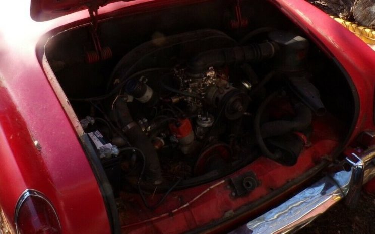 The interior looks fair, the seller does state that the seat covers need to be replaced and I spied a passenger-side door card that has gone missing, no word as to whether it’s available or not. Also noticed, is an aftermarket radio with box speakers. Beyond that, the interior doesn’t appear to need much else – Karmann Ghias, like VW Bugs, rolled with fairly spartan insides so at least they are easy to maintain and repair as needed.