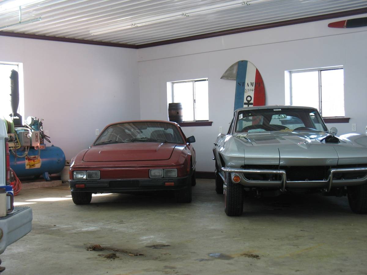 The silver stingray with red lines? I think that white convertible with whitewalls is a Kaiser.