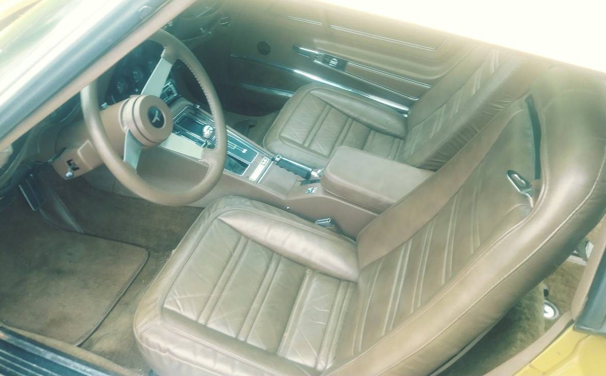 Not a 1972 front end or rear end, either, since ’72 was the last year for the chrome bumpers. 1973 was the last year for the ducktail/chrome bumper rear end. Cool looking engine and most of these old malaise-era Corvettes have had their small blocks breathed on to remedy the anemic power output. Questionable wheels and unfortunate color choice. Frankenvette – but it’s in nice shape.