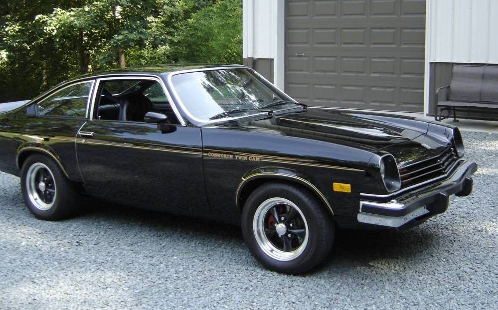 The first time that I spied a Cosworth Vega was in the late Summer of ’74. I had finished working at a Chevrolet dealership, for good, and was headed back to school so I stopped by the mechanical shop to pick up a check. My sword-crossing with the Vega was a thing of legend and when I saw the Cosworth version, freshly driven off of the auto carrier, and sitting in the middle of the shop, I asked the foreman what was up with the black Vega. He only sort of knew and mumbled a few lines and walked off, but then, he did that with everything. A wonderful person he was, but sweating the details wasn’t in his 1974 wheelhouse. To me, this black and gold Vega was lipstick on a pig, I didn’t really want to know the details.