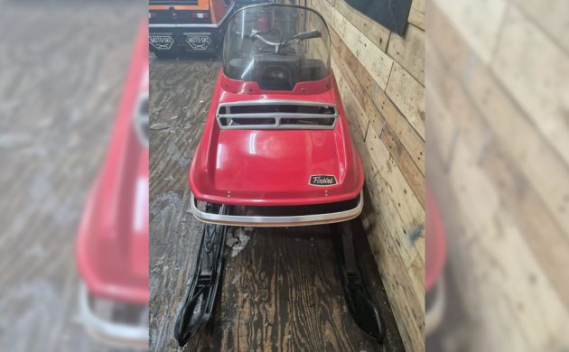 1970 was the first model year for the new Chaparral company, and they were offered until the end of 1974. By then, the North American snowmobile industry had gone from dozens of makers down to a few, due to a year or two of insufficient snowfall, but also because of something as far removed from cold and snow as you can get: the Arab oil embargo of the early 1970s. Armco Steel shut down production at the end of 1974, even though the ’75 models were ready to go. There was talk of American Motors being a possible buyer, but the end came for this fine line of snowmobiles, sadly. This particular sled is a Firebird 440, which the seller refers to as a 440e, as in electric start. It looks like an absolute jewel in the photos.