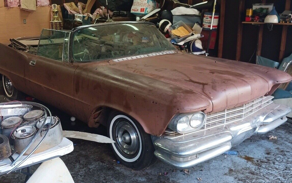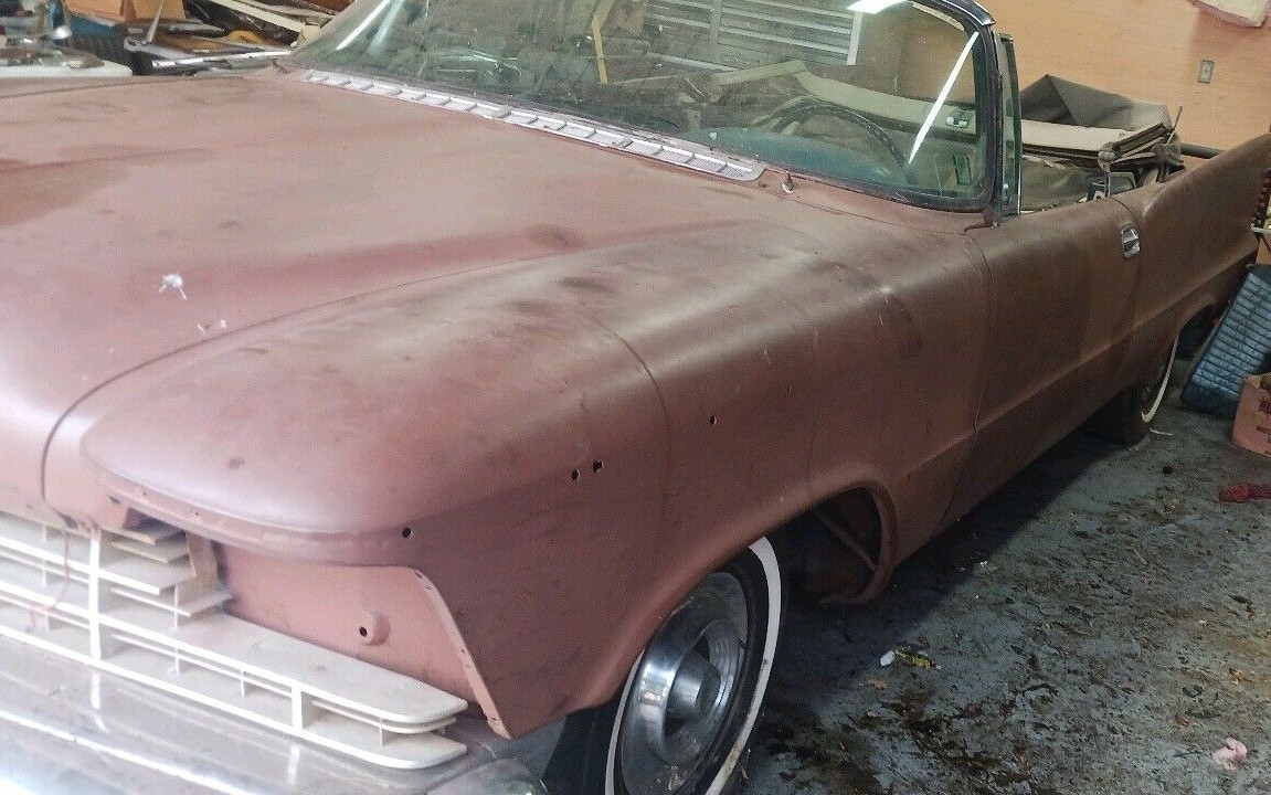 Of the Crowns produced for ’57, convertibles are the rarest, with a total of only 1,167 made, This one’s a work-in-progress, which the seller has owned for about 3 years, and my first thought was I sure hope most of the parts are still there to put it back together. But the seller includes a video, and it looks like as he’s walking around the car that there’s a whole slew of pieces lying around different areas of his garage, with the rear bumper being the only item he knows of that’s missing. The car and panels are said to be solid, with the bodywork already completed.